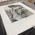 I have to say when the instructor first described the lithography project I was not particularly interested in it. I felt like I so did not want to do this project. The plate preparation and whole printing process completely did not appeal to me. It sounded like something so far from my style of printmaking. I like to work loose and react to what happens during the printing process. The description of litho seemed so far removed from that way of thinking. I decided I would have an open mind and just try and learn as much as I could and give this printmaking technique a shot.